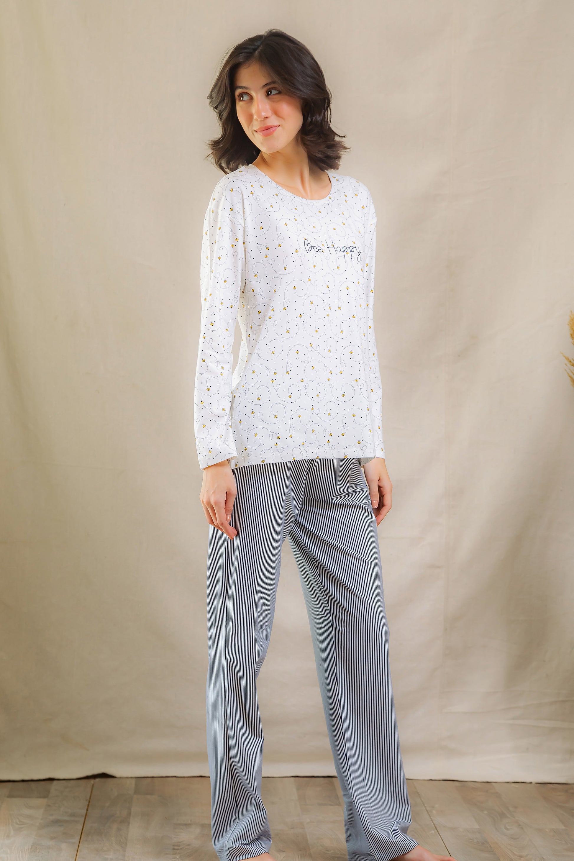 Cozy up in cheerful vibes with our Bee Happy Long Sleeve Set, designed for all-day lounging and sweet dreams