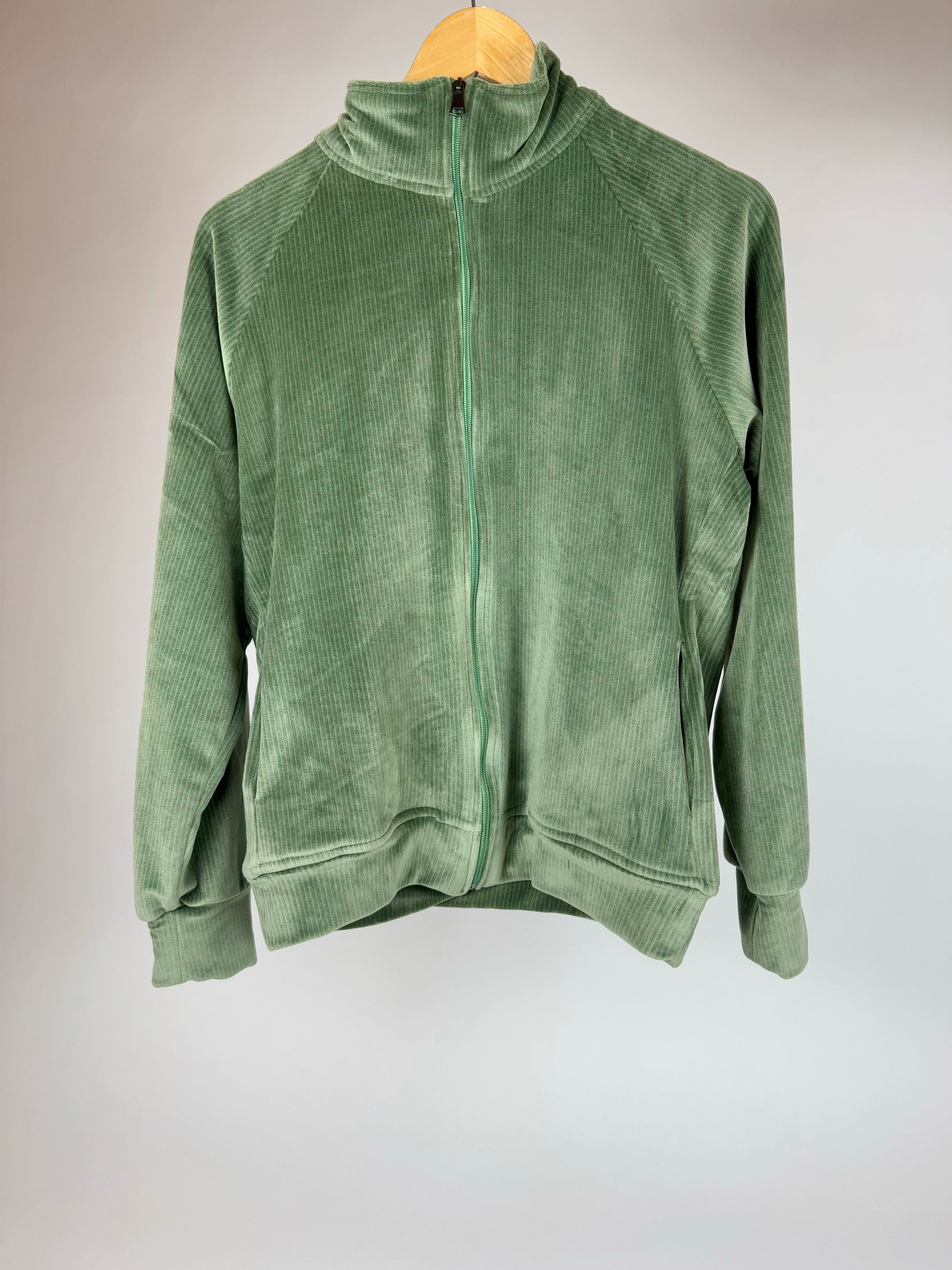 A stylish pajama set made from ribbed velvet with a zippered design, providing comfort and