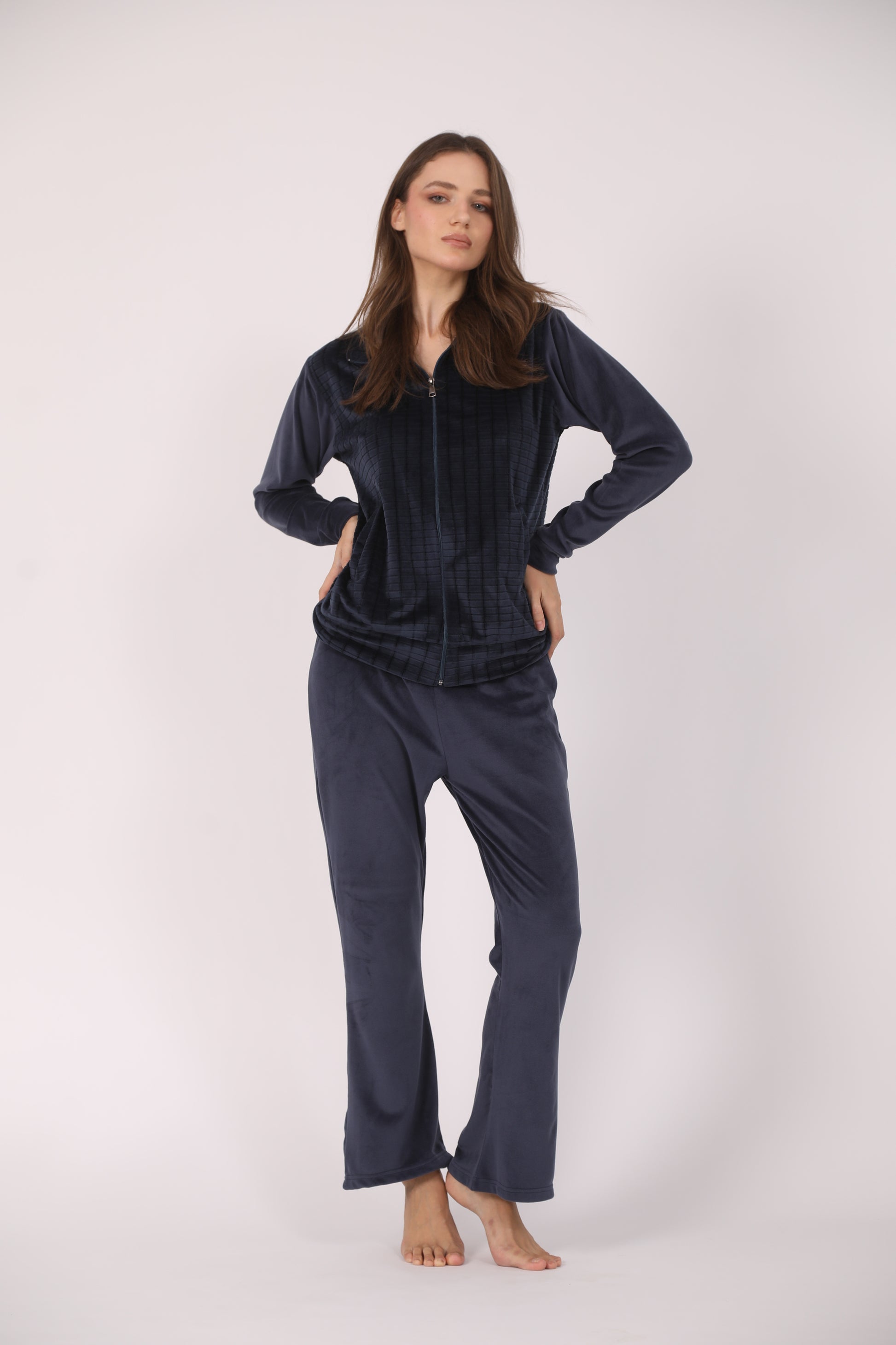 A comfortable pajama set with a squared pattern and zippered design, perfect for lounging or
